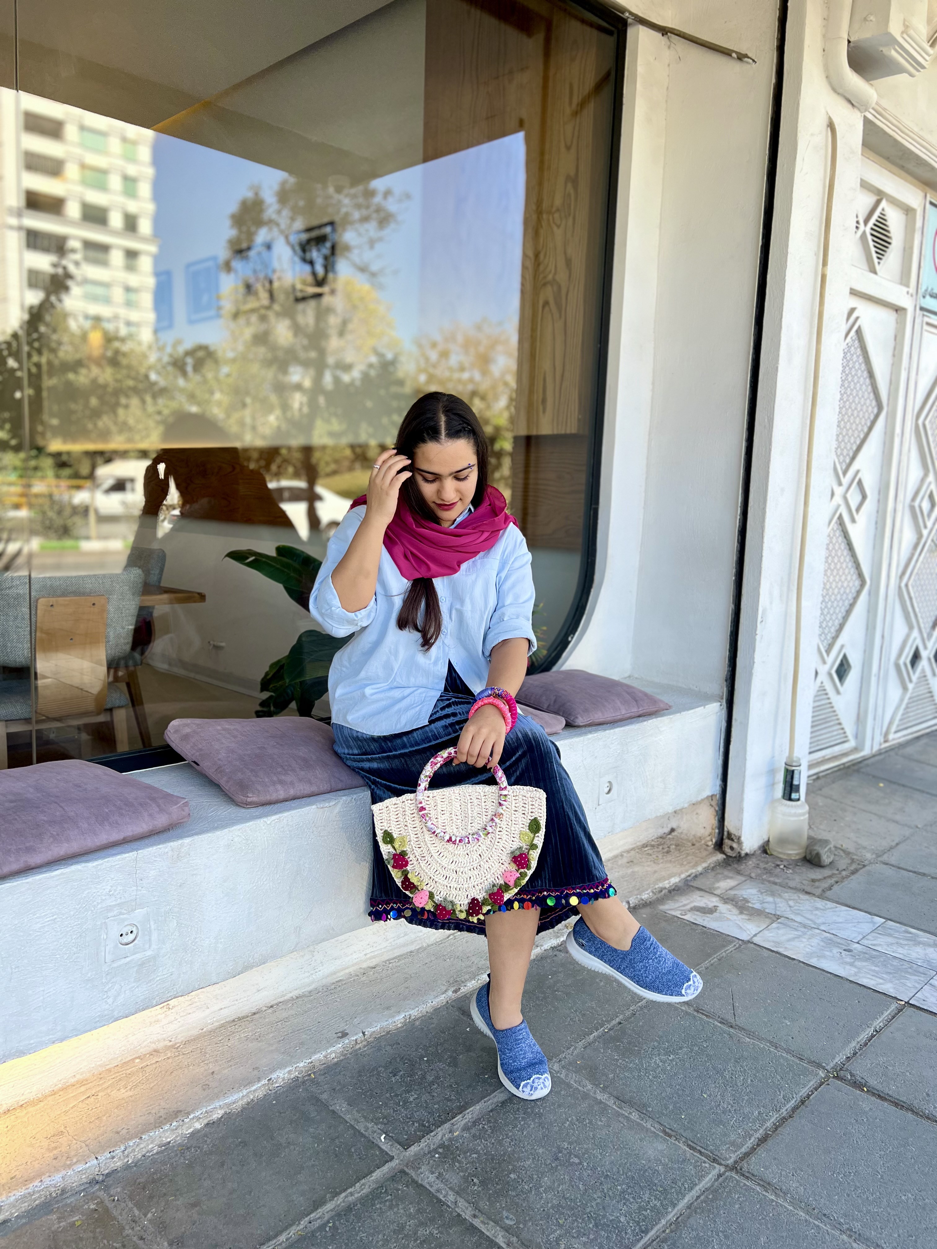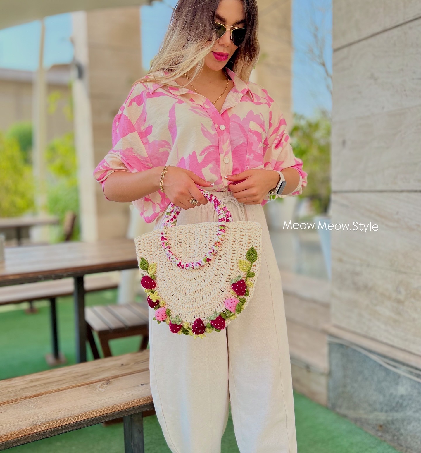 کیف رافیا زنانه مدل دستی طرح توت فرنگی